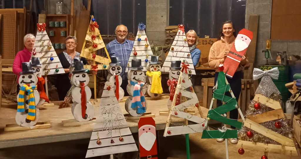 Dans une ambiance conviviale, chacun a mis la main à la pâte pour fabriquer bonhommes de neige, sapins et panneaux qui viendront bientôt égayer nos bords de route.